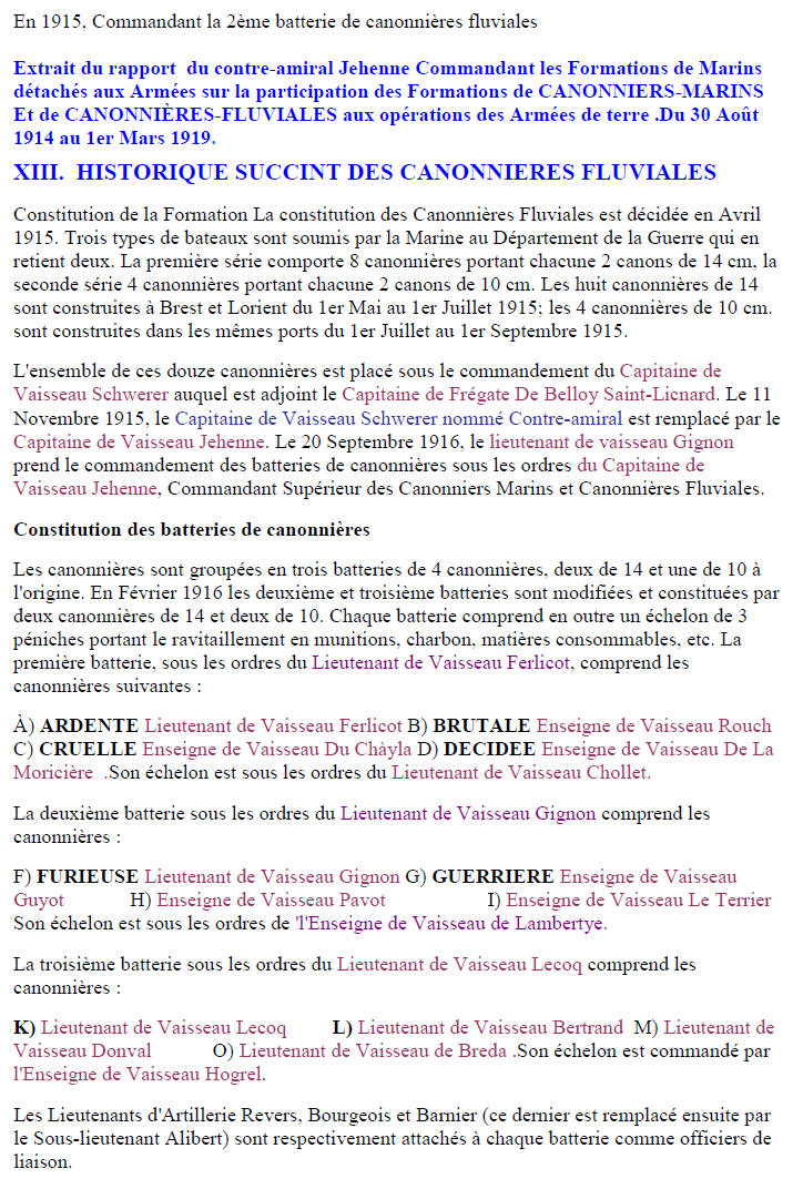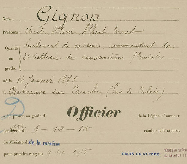 2ème batterie de canonnières fluviales, il est cité à l'ordre de