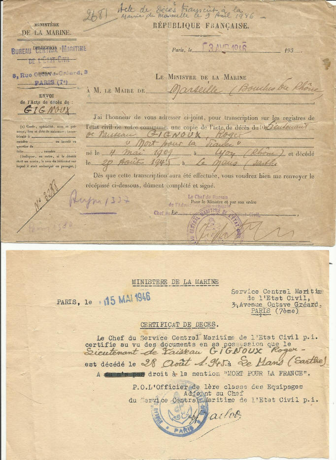 Commandant de l'un des dragueurs, le Lieutenant de Vaisseau GIGNOUX