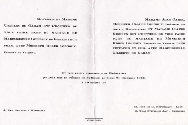 Epouse le 19 décembre 1936 à Marseille