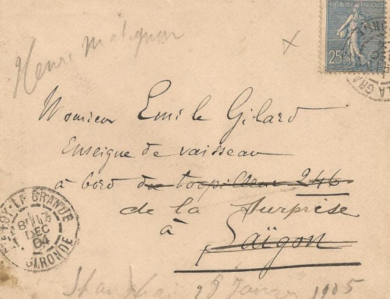 sur le cuirassé "VAUBAN", Escadre d'Extrême-Orient (Cdt Hippolyte