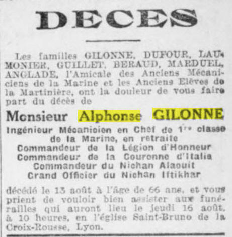 Né le 23 juin 1868 à LYON (Rhône) - Décédé le 13 août 1934 à LYON