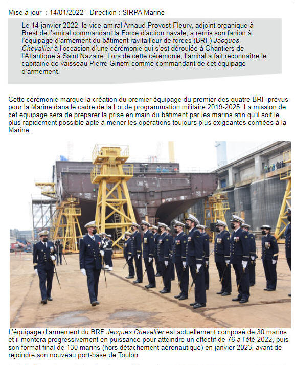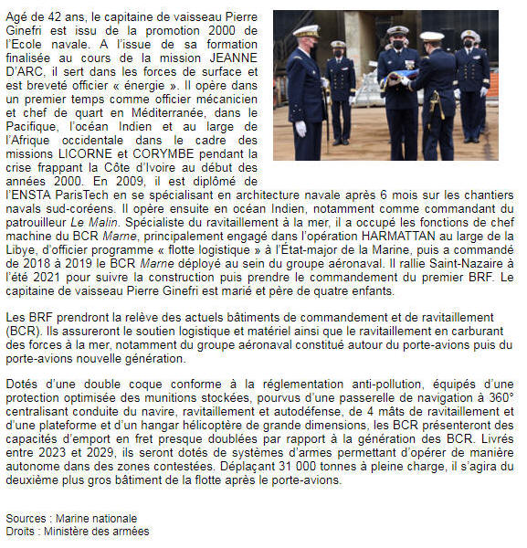 2021, attribution de commandement / Bâtiment ravitailleur de forces