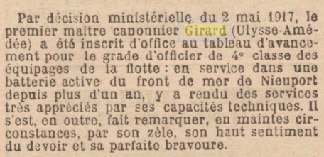 O.E.F. de 4ème classe le 2 mai 1917, étant en service au Régiment de