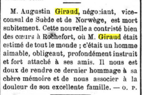 (Charente Maritime) - Décédé le 6 novembre 1884 à ROCHEFORT