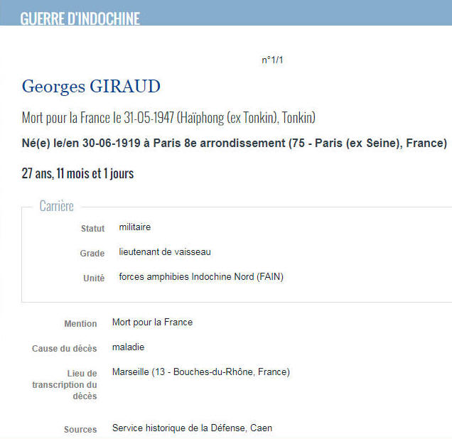 (Seine) - Décédé le 31 mai 1947 à HAIPHONG (Viet-Nam)