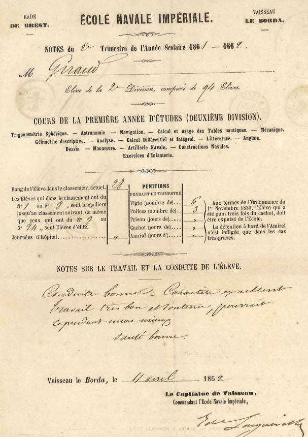 sur le vaisseau "SOUVERAIN", École de canonnage à TOULON (Cdt Henri