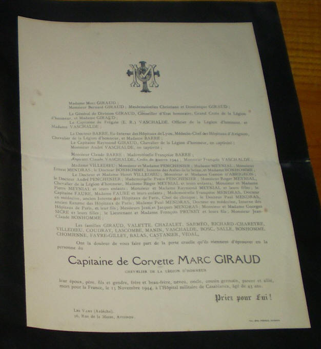 en service à la police maritime de CASABLANCA, décède de maladie.