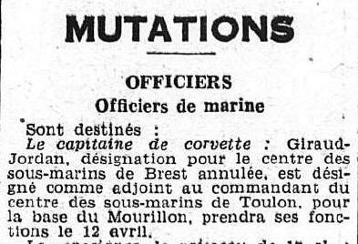 en second du "BOURRASQUE" en 1933, désigné le 29 juin 1933, remplacé
