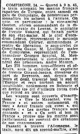 heures. Le JEAN MIC accompagné du MASSALIA arrive à Alexandrette le
