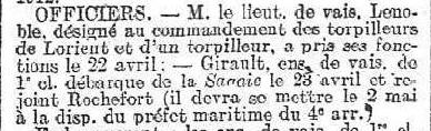 contre-torpilleur "SAGAIE", Station des torpilleurs de LORIENT (Cdt