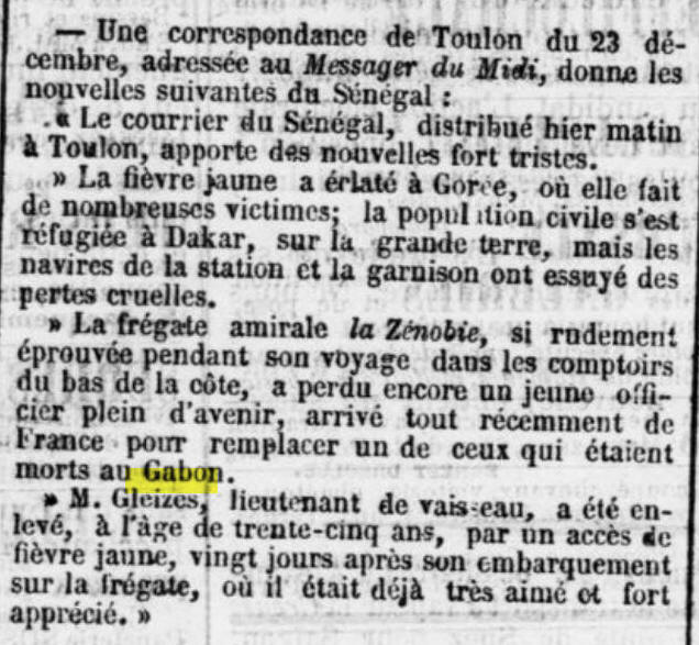 Décédé le 27 novembre 1866 au Sénégal à bord de la "ZENOBIE"