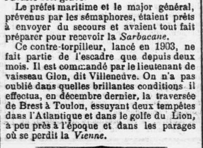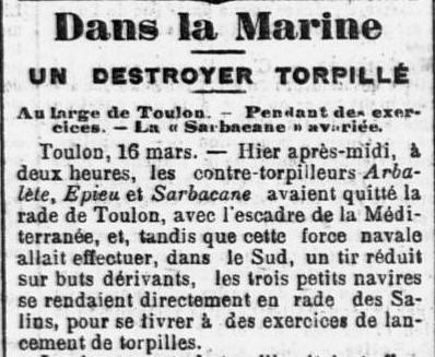 Commandant le contre-torpilleur "SARBACANE", Escadre de