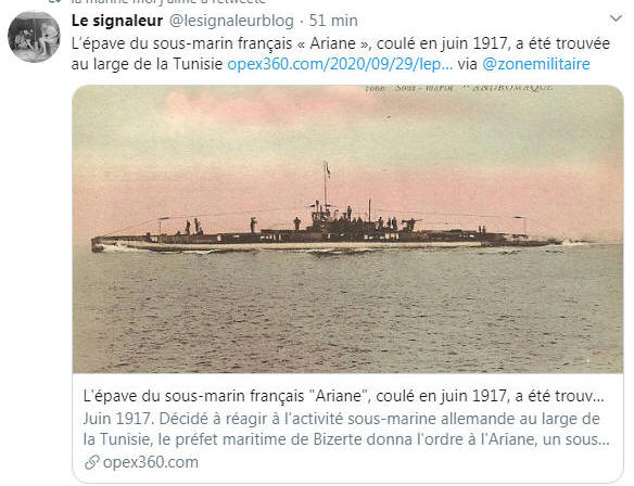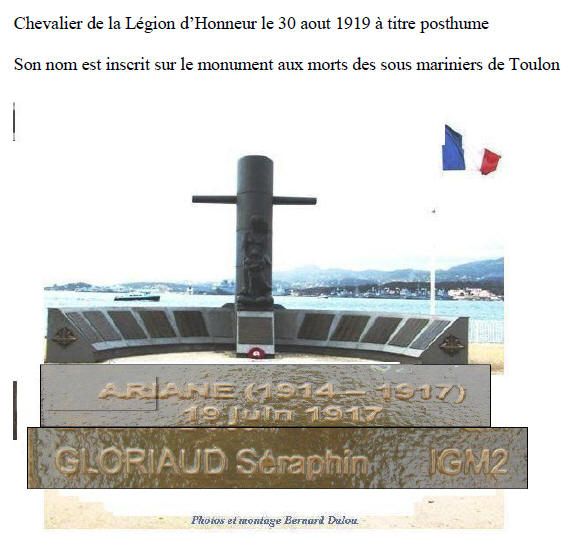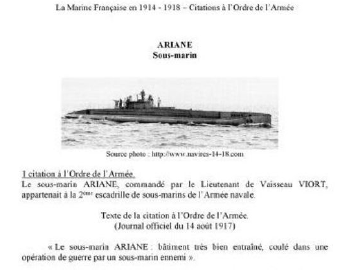 Le 19 juin 1917, embarqué sur le sous-marin "ARIANE" (cdt