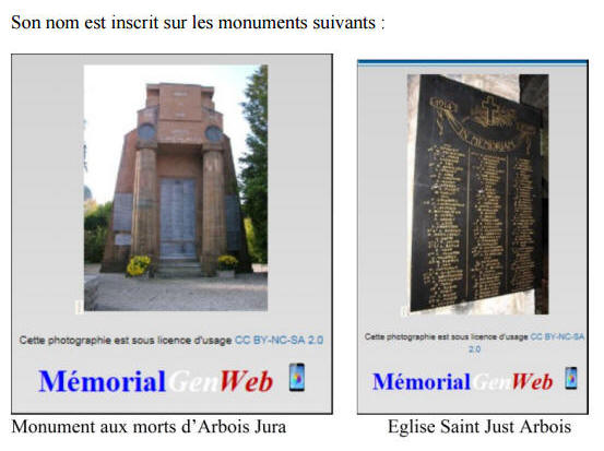 Né le 18 mars 1890 à ARBOIS (Jura) - Décédé en mer le 19 juin 1917