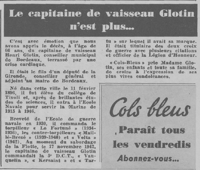torpilleur "FORTUNÉ" le 29 décembre 1934.