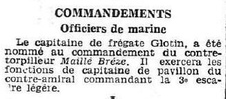 contre-torpilleur "MAILLÉ-BRÉZÉ" du 2 mai 1939 au 30 avril 1940.