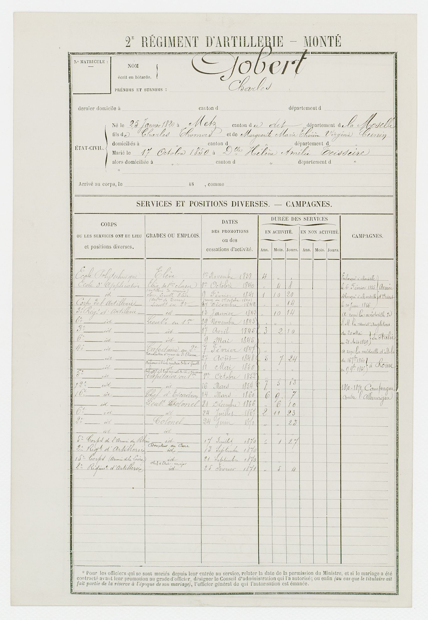 Né le 25 janvier 1820 à METZ (Moselle)