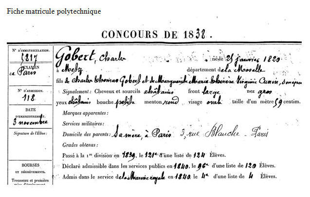 Élève de l'École polytechnique en 1838.