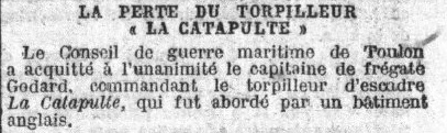 Commandant le torpilleur "RENAUDIN", en essais à TOULON. Idem au 1er