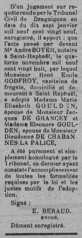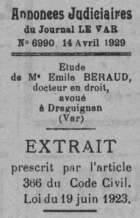 PARIS XVIe (Seine) - Décédé le 16 janvier 1981 à FRÉJUS (Var).