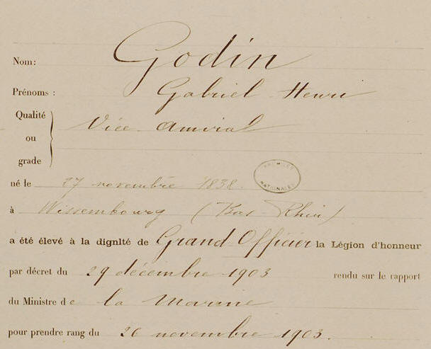 Chevalier de la Légion d'Honneur le 15 mars 1865