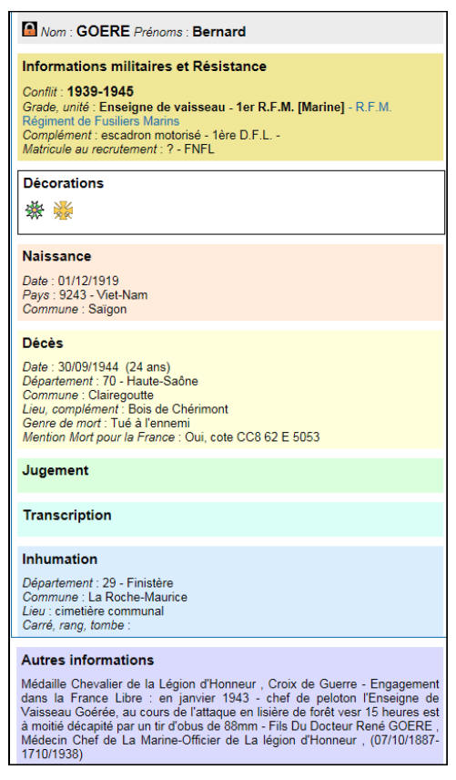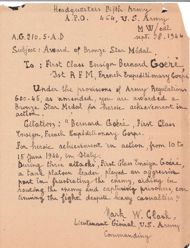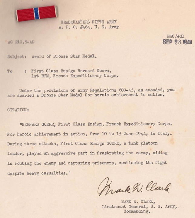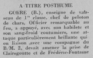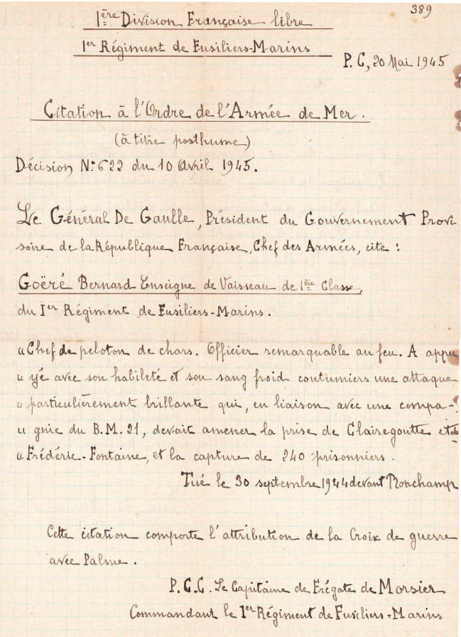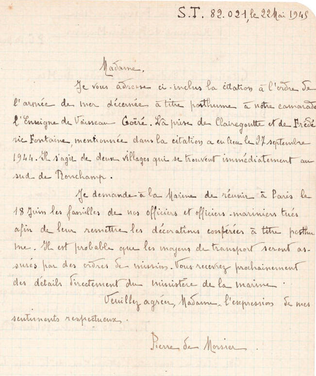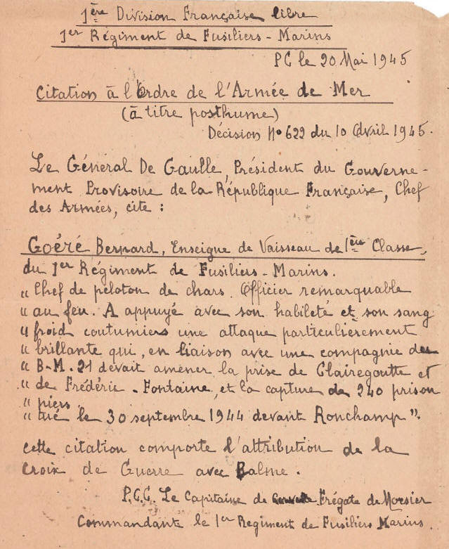 février 1945, l'enseigne de vaisseau Goéré a été nommé chevalier de