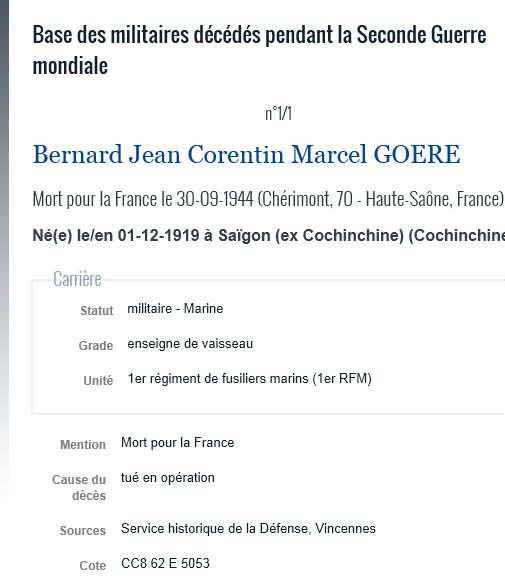 familiale Goëré-Bastien-Thiry / Remerciements Musée fusiliers marins