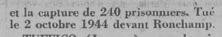 prisonniers. Tué le 2 octobre 1944 devant Ronchamp."