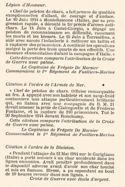 la citation suivante à l'ordre de l'armée de Mer : "Chef de peloton