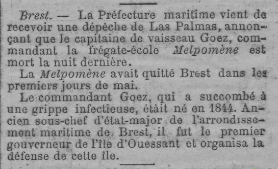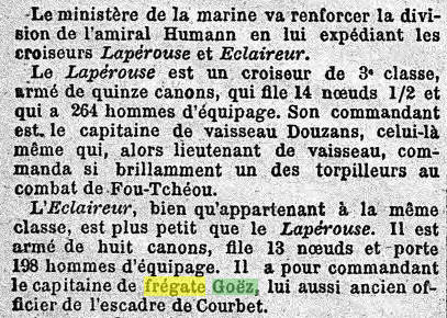 (nomination du 22 septembre 1898), Commandant la frégate à voiles