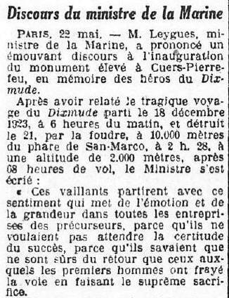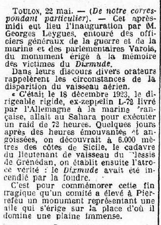 "DIXMUDE", Il disparait avec l'aéronef frappé par la foudre.