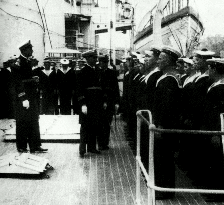 l'équipage au nouveau Commandant, le CF Gonet, Québec le 13 aout