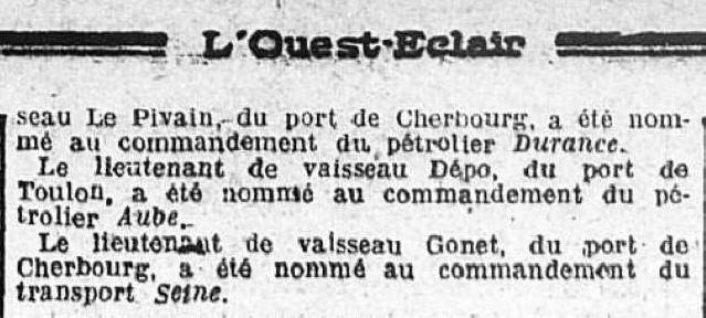 2ème classe le 5 octobre 1911; port CHERBOURG.