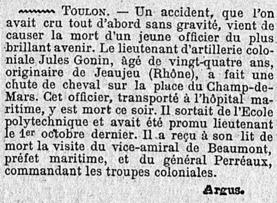 BEAUJEU (Rhône) - Décédé le 21 décembre 1901 à TOULON (Var).