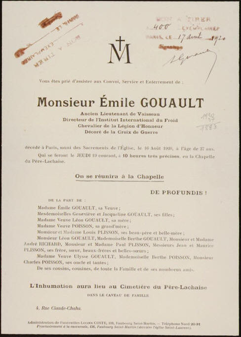 PARIS (Seine) - Décédé le 16 août 1920 à PARIS (Seine)