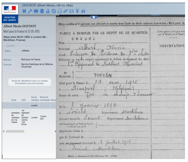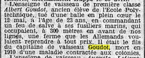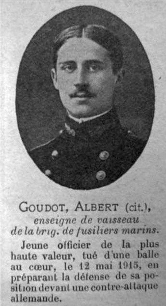 1915 (JO du 11 mai 1918), l'enseigne de vaisseau Goudot a été cité à