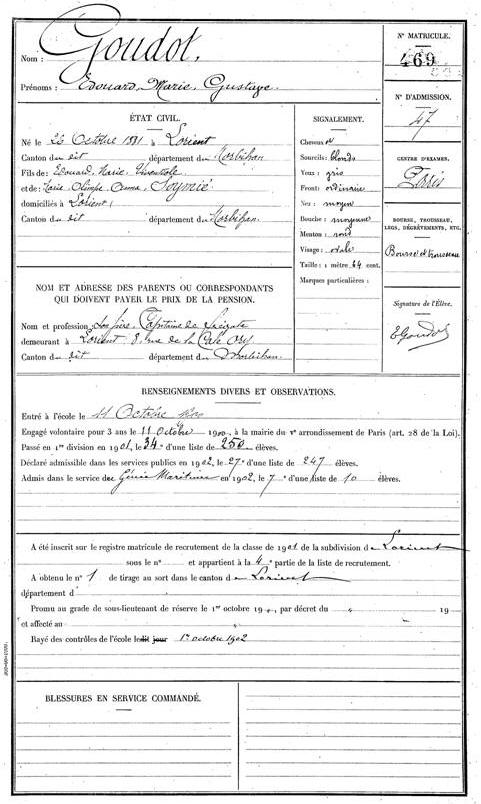 polytechnique le 1er novembre 1900, opte pour le Génie maritime.