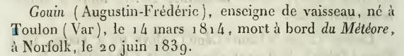 Décédé le 20 juin 1839 dans la baie de CHESAPEAK au large de la