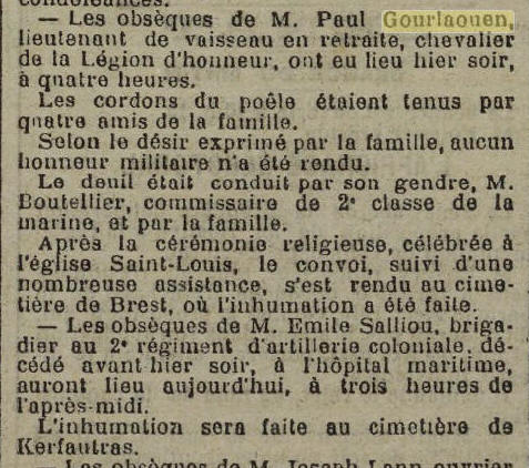 Né le 1er août 1847 à AUDIERNE (Finistère) - Décédé le 28 mars 1902