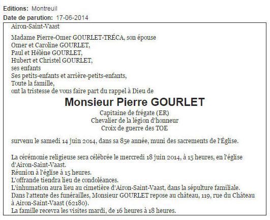 Inhumé dans le cimetière de la commune d'Airon Saint Vaast