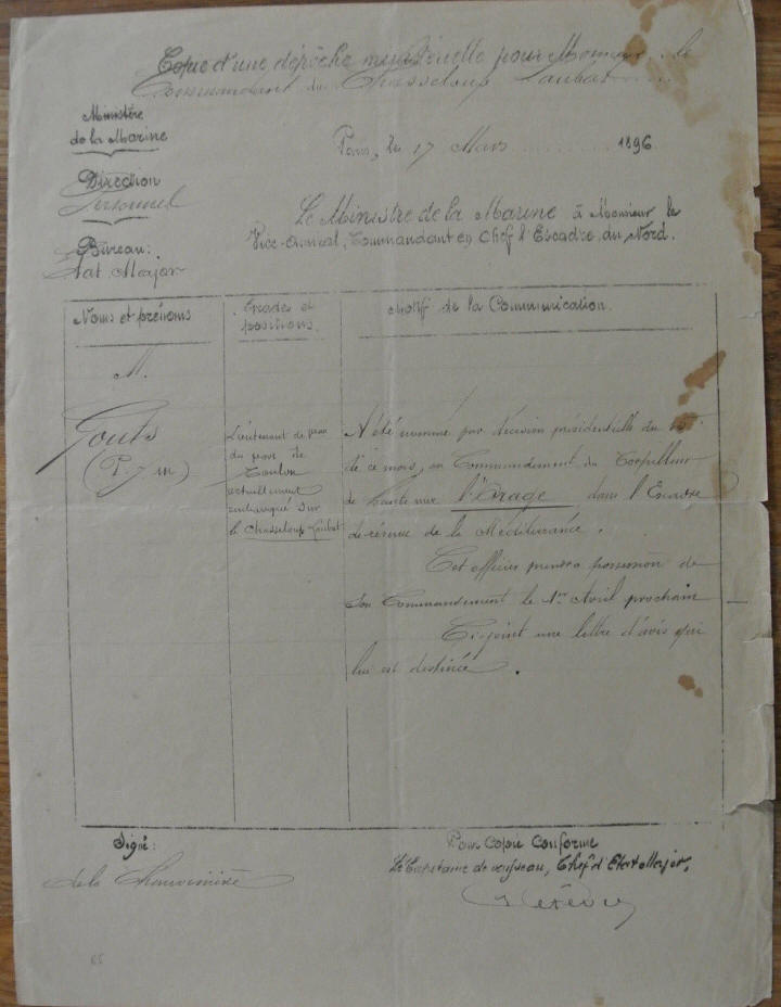 réserve de l'Escadre de Méditerranée (Cdt Félix GATIER).