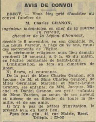Extrait La Dépêche de Brest / 9 novembre 1939