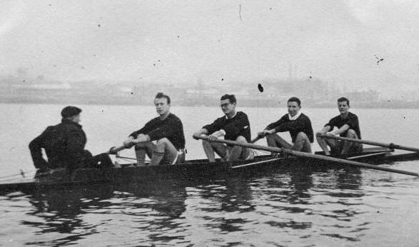 il participait à des compétitions d'aviron ; il est au 2° rang
