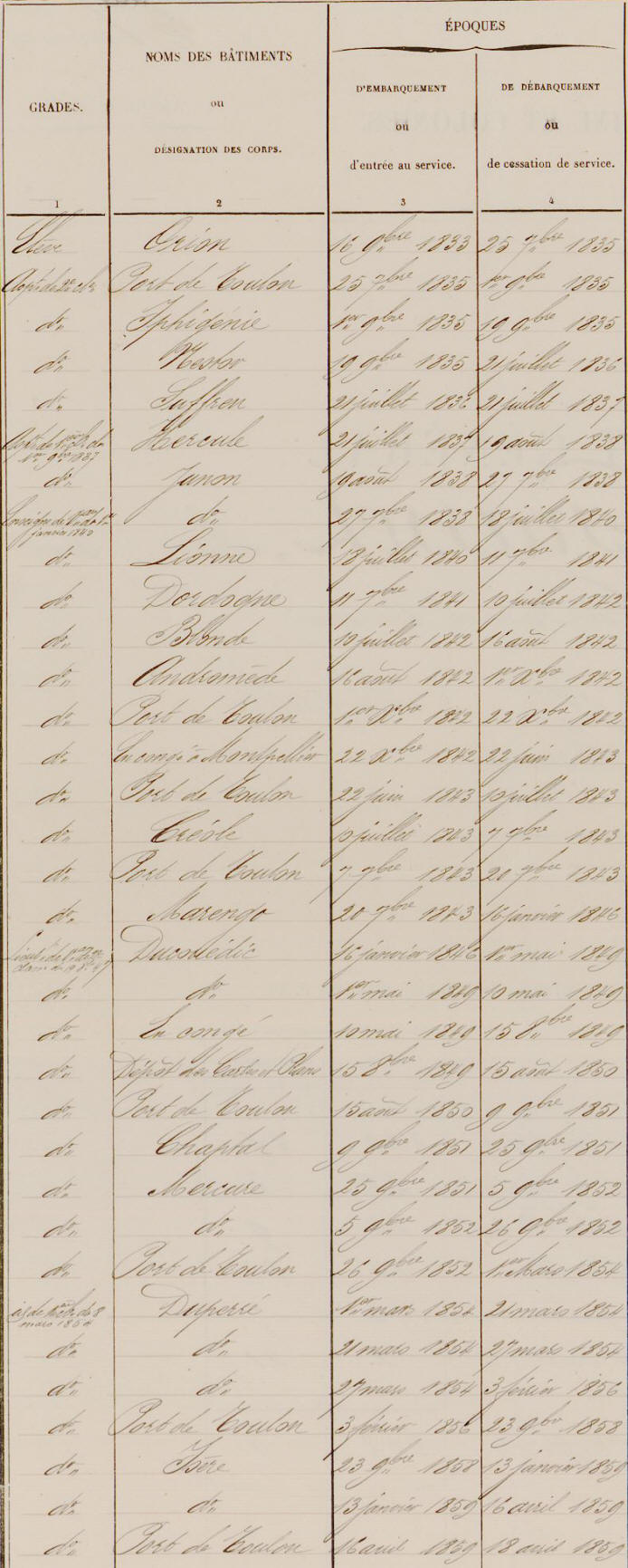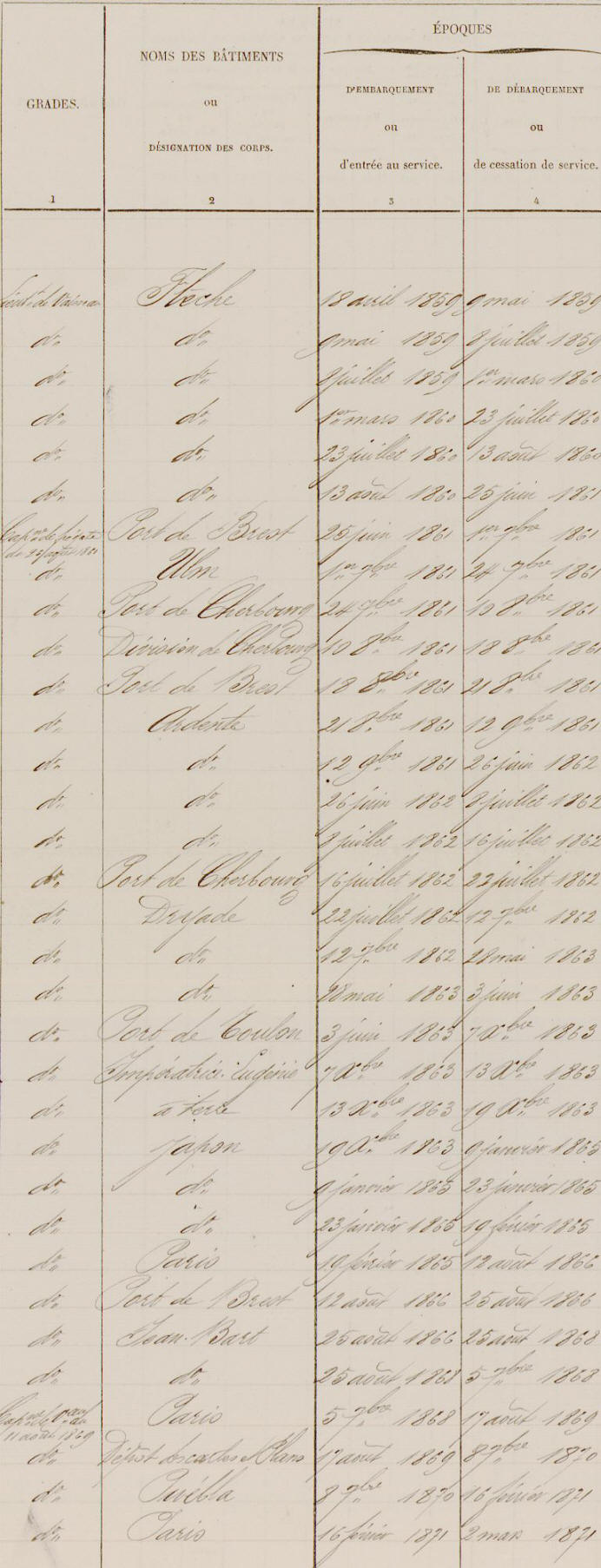 Etats de service