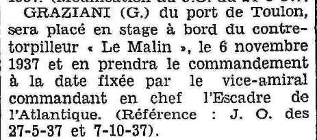 il commande le contre-torpilleur "MALIN", le 9 novembre 1937.
