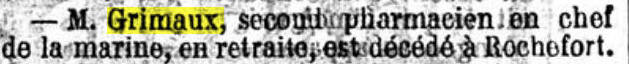 pharmacien de première classe, en service à Rochefort. Décembre 1836 : il est