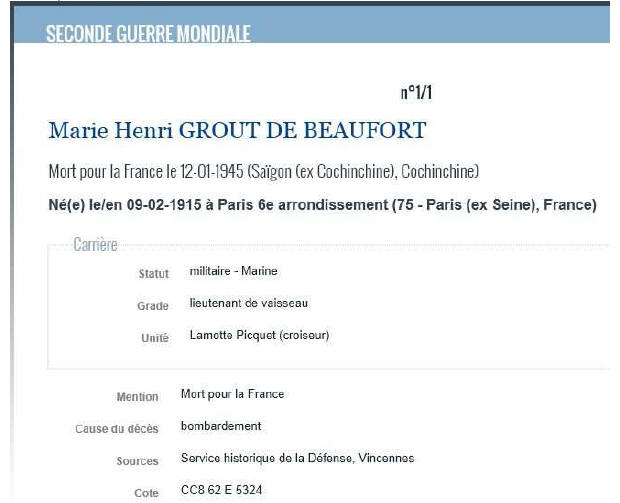 Décédé le 12 janvier 1945 à THANH-TUY-HA, près de SAÏGON (Indochine