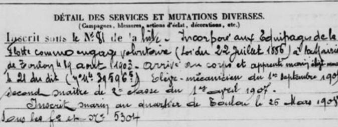 Au 1er janvier 1921, Professeur à l'2cole des mécaniciens de TOULON.