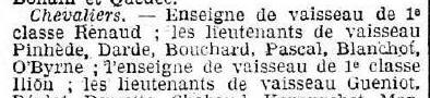 Lieutenant de vaisseau le 15 janvier 1910; port ROCHEFORT.