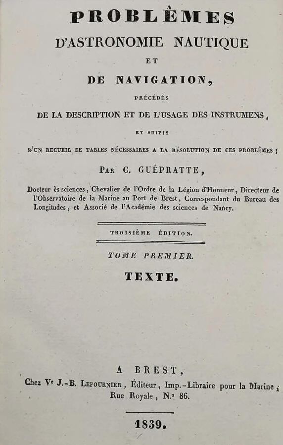 d’astronomie nautique et de navigation (1847). Vademecum du marin